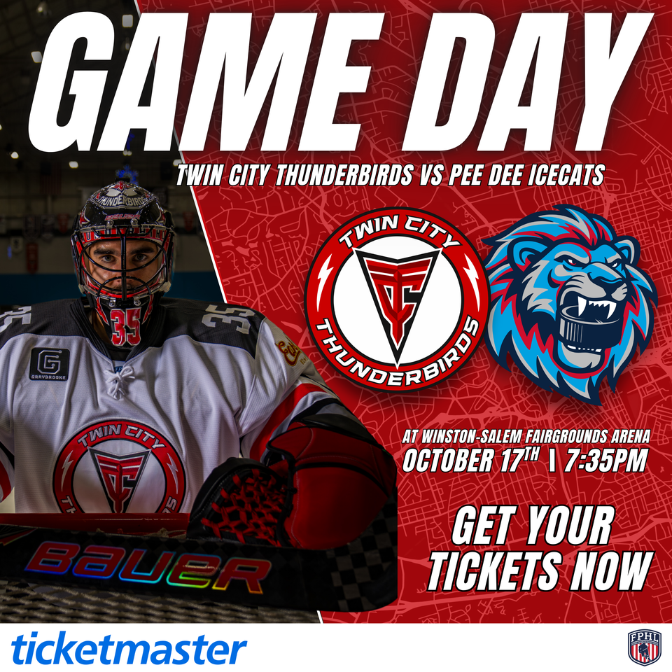 WINSTON-SALEM, N.C. – The Twin City Thunderbirds, proud members of the Federal Prospects Hockey League (FPHL), are set for the 2025-2026 Home Opener at the Winston-Salem Fairgrounds Arena tonight in a matchup against the Pee Dee IceCats. Tickets to tonight’s game are still available and may be purchased online by visiting WSFairgrounds.com, Ticketmaster.com, or by calling the Winston-Salem Fairgrounds Arena Box Office at (336) 727-2236. Puck drop for tonight’s game is scheduled for 7:35pm ET.