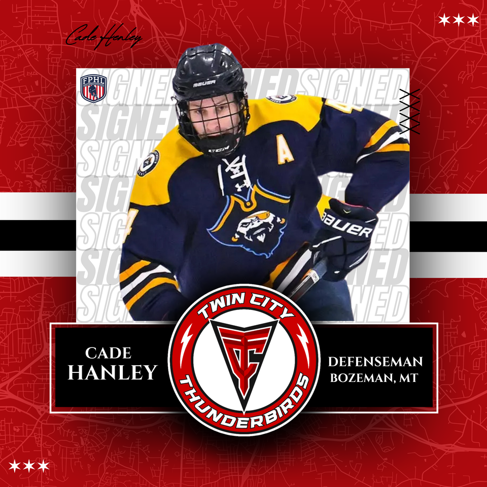WINSTON-SALEM, N.C. – The Twin City Thunderbirds, proud members of the Federal Prospects Hockey League (FPHL), have signed defenseman Cade Hanley to a player agreement ahead of tomorrow’s home game against the Blue Ridge Bobcats.
