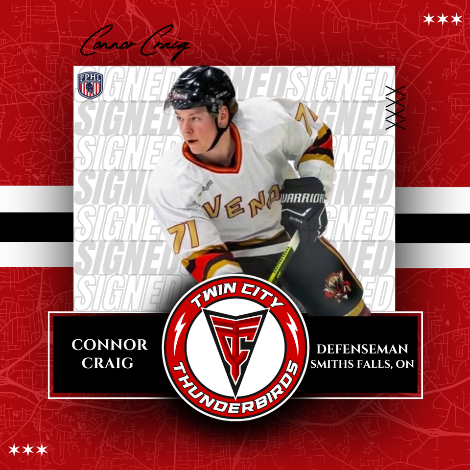 WINSTON-SALEM, N.C. – The Twin City Thunderbirds, proud members of the Federal Prospects Hockey League (FPHL), have signed defenseman Connor Craig to a standard player agreement.