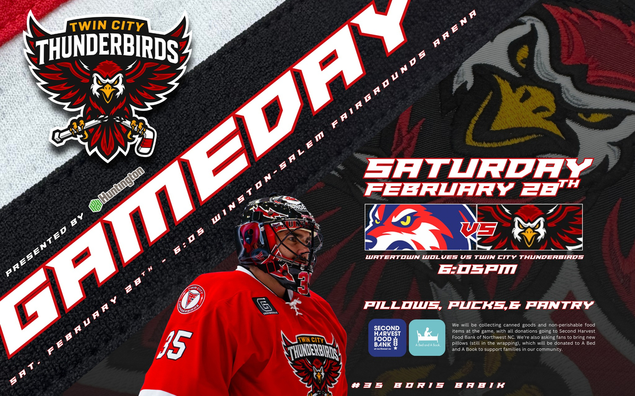 The Thunderbirds will be collecting canned goods and non-perishable food items at tonight’s home game. All donations will go to Second Harvest Food Bank of Northwest North Carolina. The Thunderbirds are also asking fans to bring new pillows, in their original packaging, which will be donated to A Bed And A Book to support families in our community.